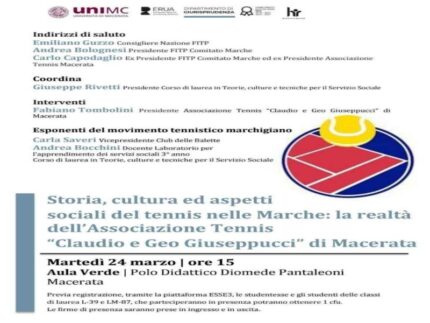Espolare il mondo del tennis, incontro all'università di Macerata il 24 marzoIl tennis non è soltanto una disciplina sportiva, ma anche un importante strumento di crescita sociale e culturale