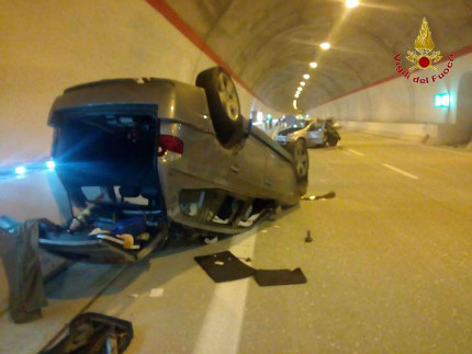Per cause ancora in via di accertamento, una vettura ha tamponato quella che la precedeva e poi è cappottata.