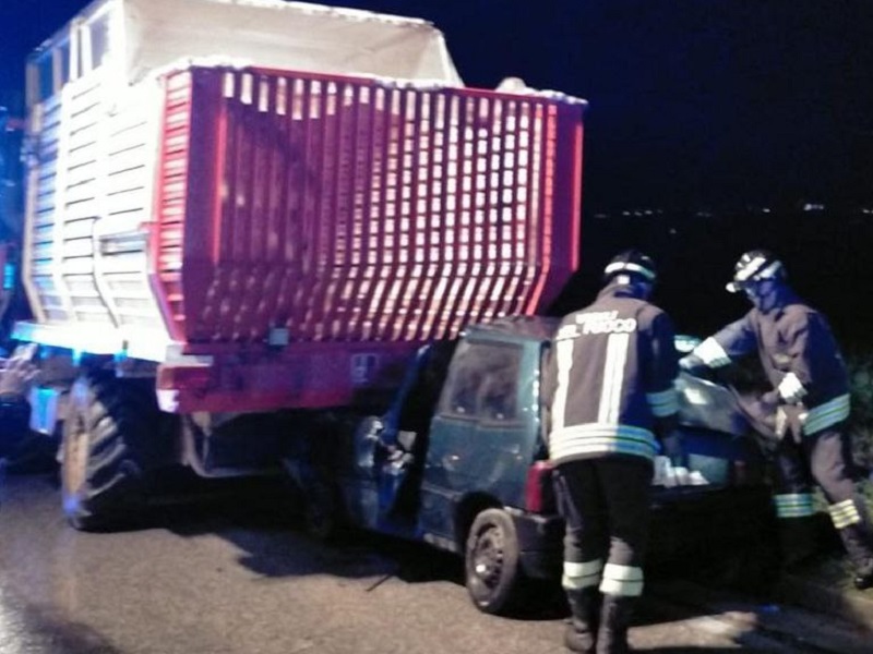 Violento incidente stradale a Morrovalle nella notte tra mercoledì 20 e giovedì 21 novembre: coinvolti nell’impatto un’automobile e un mezzo agricolo.