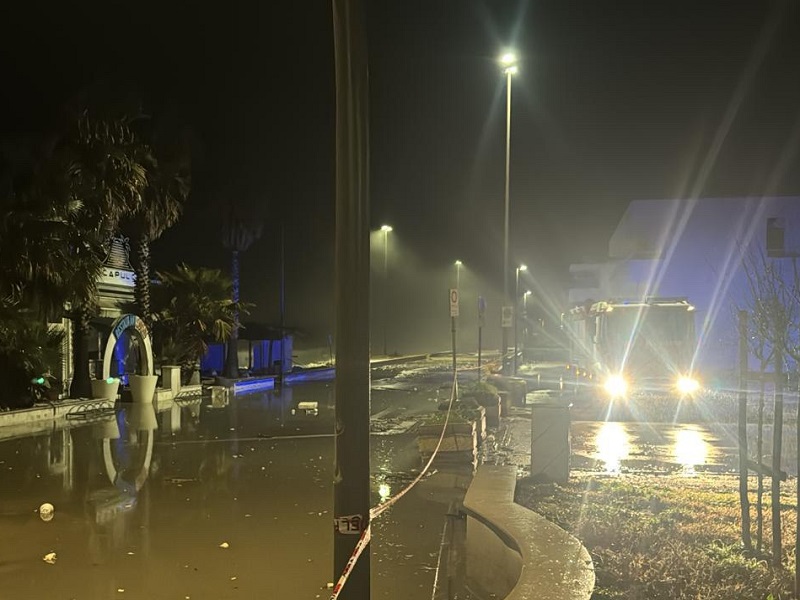 Le onde hanno iniziato ad aumentare d’intensità intorno alle ore 20.00, per poi raggiungere rapidamente sia il lungomare della cittadina che la Strada Provinciale che si trova sul litorale, poi rimasta chiusa al traffico per tutta la mattina.
